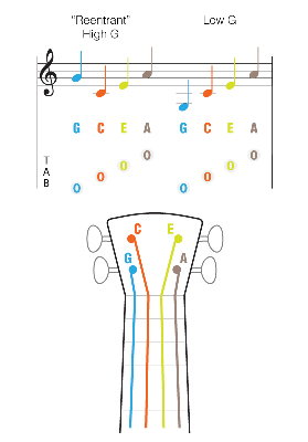 There are 2 types of common tuning – the re-entrant High G (the standard common tuning ukes come in, due to the instrument’s most common use as an accompaniment instrument) or the Low G tuning (preferred by guitarists who switch to ukulele, as it allows for more scalar shapes & melodic playing).