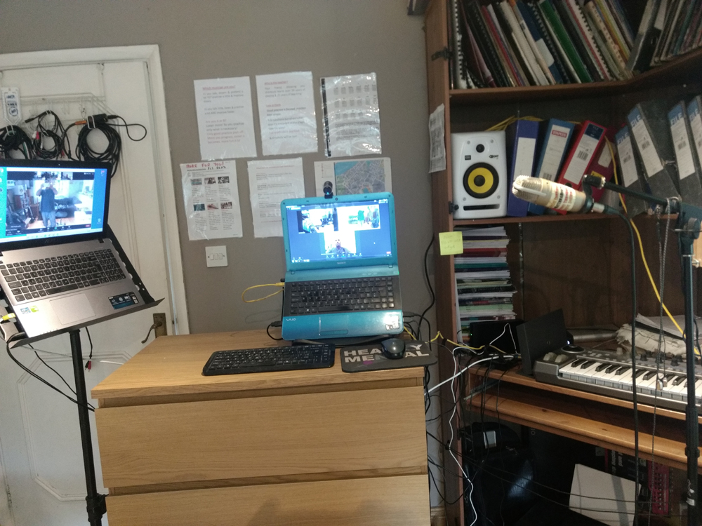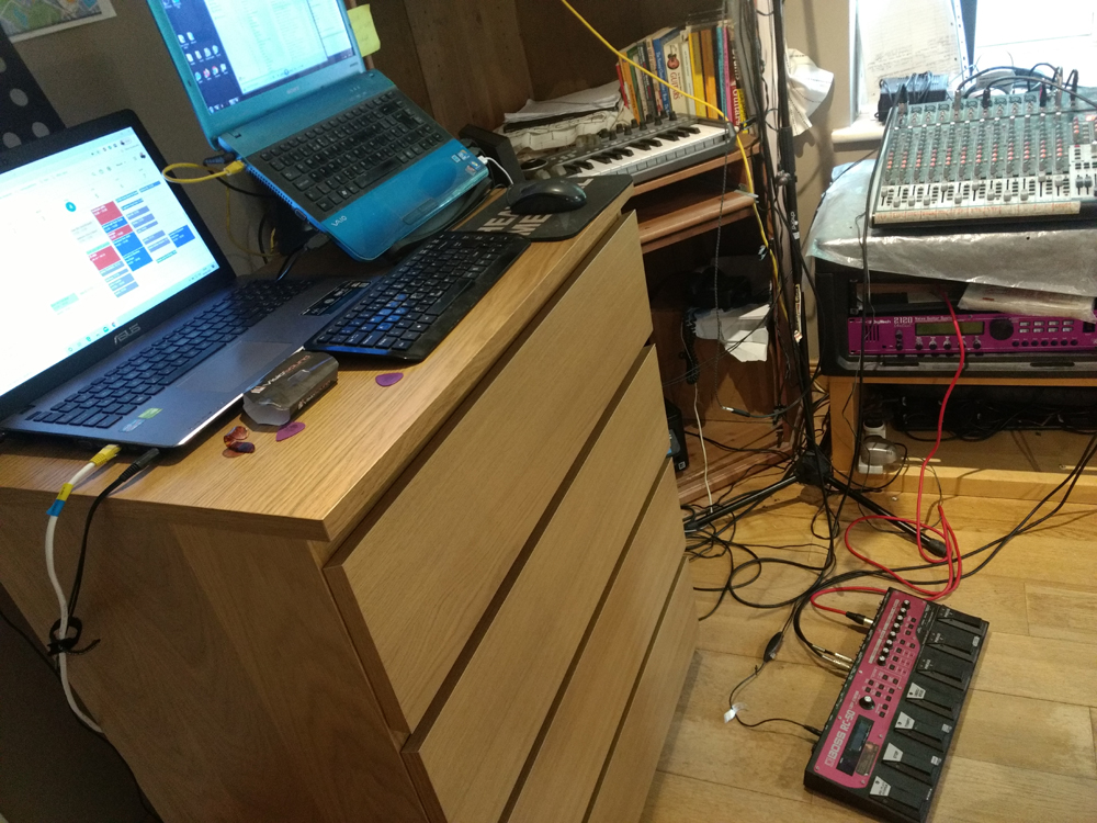 - USB mixer (with my mic, instruments & backing tracks all into it as to transmit multi-chnl audio as 1 soundwave to you)